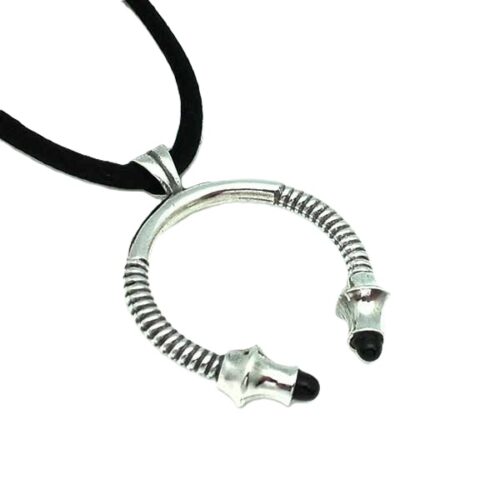 Colgante Torques Celta en Plata y cabezales en Azabache. Artesanía de Galicia.