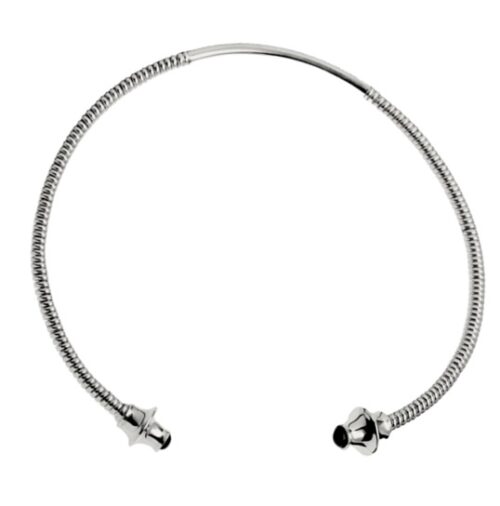 Brazalete Torques Celta en Plata Primera de Ley y rematado en cabezales de Azabache. Artesanía de Galicia.