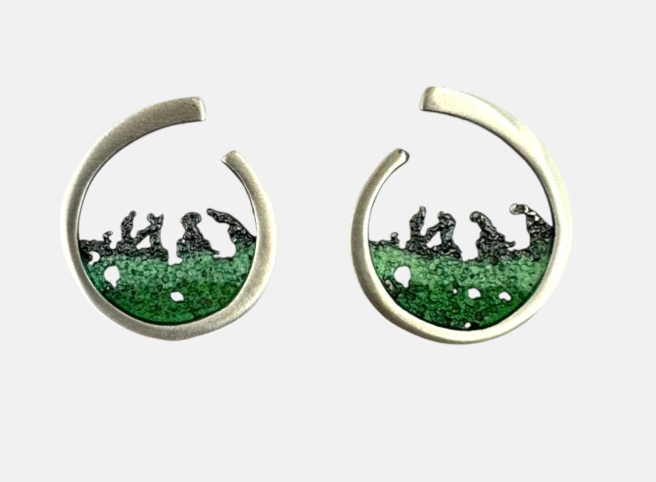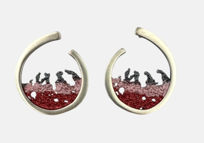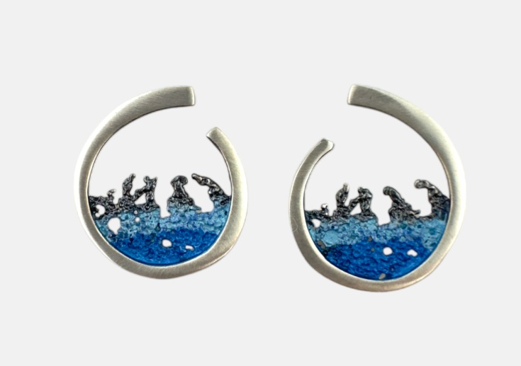 Pendiente OLA mediano de presión en Plata y Pigmentos Naturales. Artesanía de Galicia