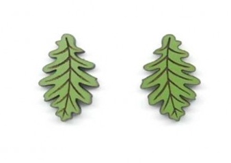 Pendientes de Madera, Hoja de Roble con cierre de tuerca de presión.