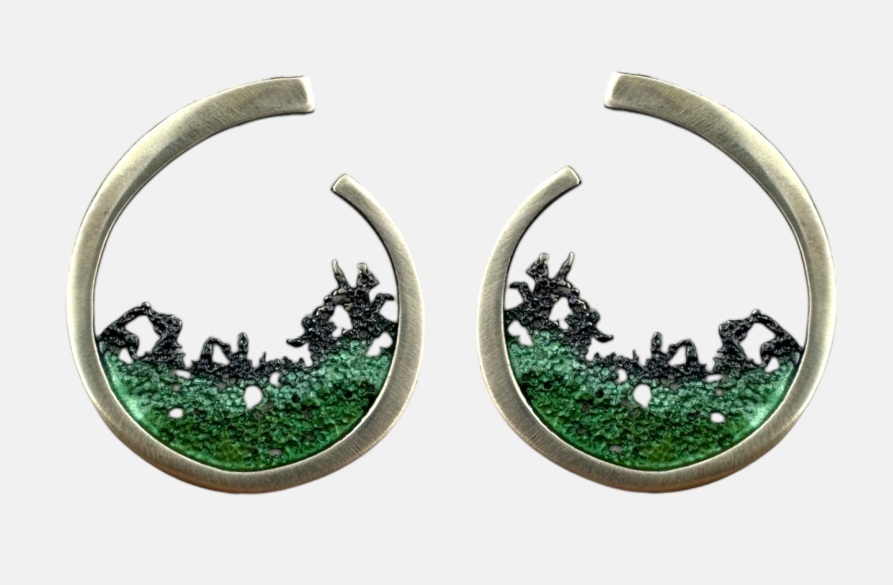 Pendientes OLA grandes cierre circular en Plata y Pigmentos Naturales. Artesanía de Galicia.