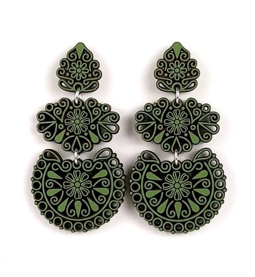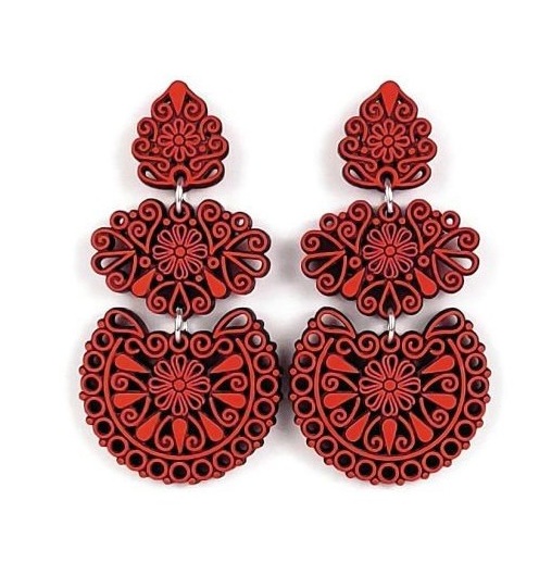 Pendientes Sapo Triple de Madera, Aderezo, con cierre de tuerca de presión.