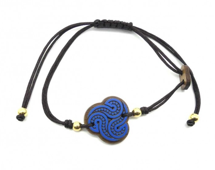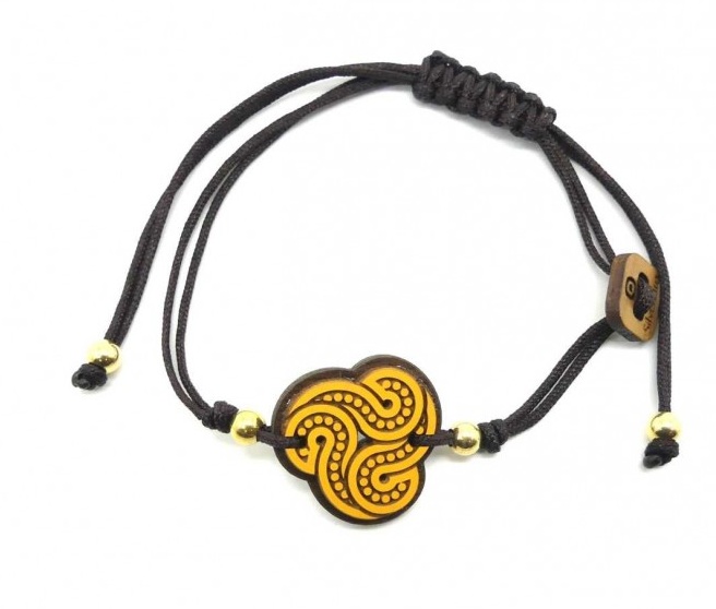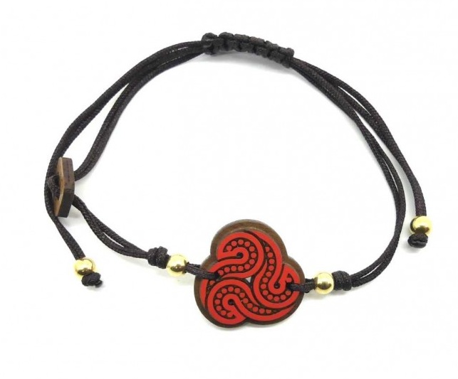 Pulsera de madera y Plata de Ley chapada en Oro con Hilo de Nylon. Medidas de la pieza 18x18mm con cierre regulable.